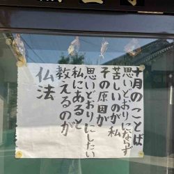人生では苦しみと向き合うことも多いでしょう。生まれ、老い、病み、死んでいく苦しみ。愛するものと別れ離れる苦しみ、怨み憎む者と会わなければならない苦しみ、求めても得られない苦しみ、思うようにならない心身から生じる苦しみ。生きていく上では決して避けることができない苦悩です。普段あまり意識することがない人でも、突然に目の前に大きな壁となって現れて私たちを苦しめます。そしてこのような苦しみに対して私たちの知識や経験は役には立ちません。だからこそ、どんな心構えで生きてゆくか考える必要があるのです。そこから人生はスタートするのだと思います。これから生きていくうえで何を目標とし、どんな心構えで生きてゆくべきなのか、誰もが真剣に考えなければならない一人ひとりの問題です。その解決には宗教しかありません。かげかえのない私の人生を、本当の意味で輝かしいものへと導くのが仏教です。ウェブサイトには「法座・法話」の項目があります。ここではいくつかの法話を掲載しています。仏教について知ってもらえたらと思います。浄土真宗は聞く宗教です。ぜひお寺へ法話を聞きに来ていただければと思います。まず知ってもらって、お寺へ来てください。そして法話を聞いてみてください。みなさまのご来院を心よりお待ちしております。