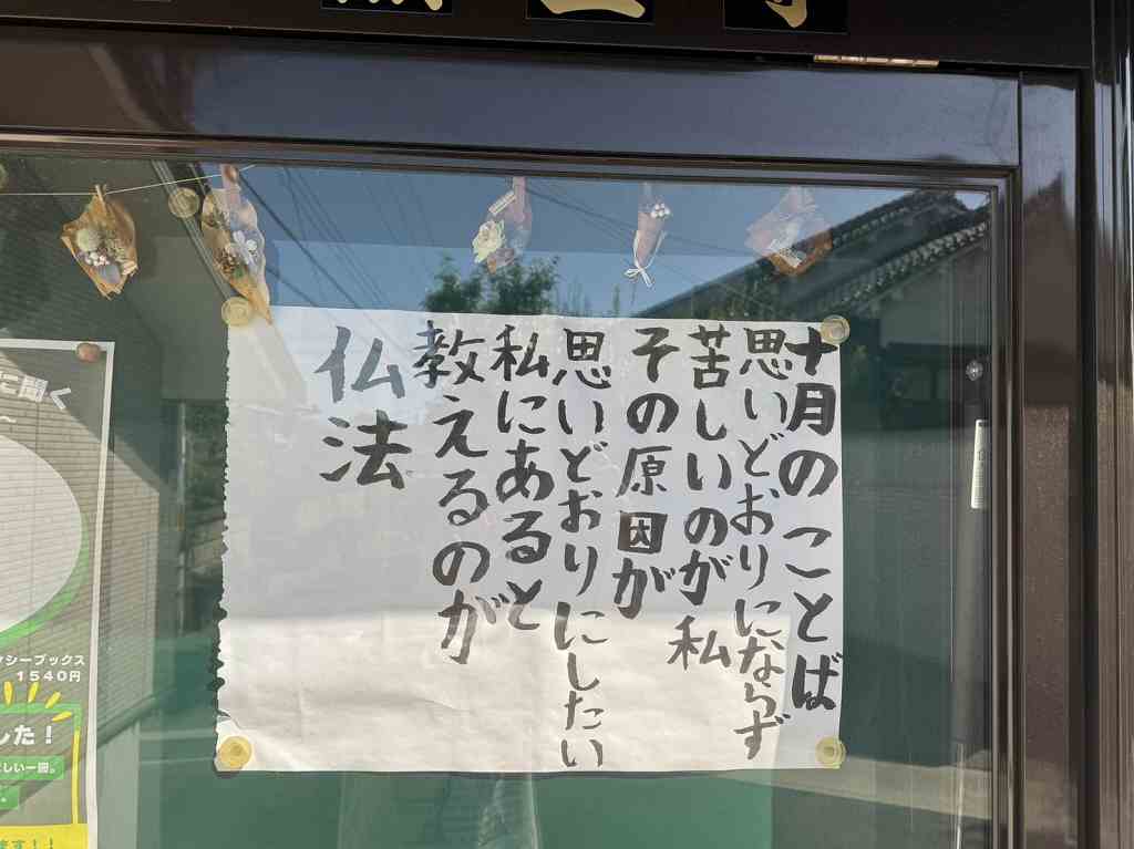 随分と秋らしくなってきました。10月のことばです。若くて元気にいられたらと誰しも考えます。もっとお金や財産があれば、もっと仕事がうまくいけばと考えますが、その通りにならないことから苦しみが生まれます。思い通りにしたいという欲求は「執着」であると示し、苦しみの原因が私にあると示すのが仏教です。そこらからすべての苦しみを超える道にであっていくのです。